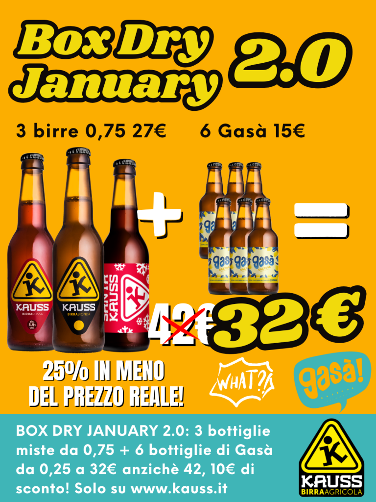 La Box Dry January 2.0 non è solo un’offerta speciale: è un modo per iniziare l’anno con consapevolezza, varietà e gusto. Non rinunciare al piacere delle birre Kauss e alla freschezza della Gasà: approfitta subito dello sconto di 10 € e rendi il tuo Dry January un’esperienza davvero unica.