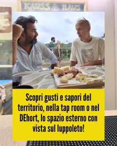 Durante l’estate, la Kauss Haus si trasforma nel DEHort, il nostro spazio verde all’aperto, affacciato sul luppoleto. Un ambiente perfetto per un aperitivo al tramonto, una degustazione guidata o una serata in compagnia.